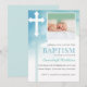 White Cross Blue Watercolor Photo Baptism Invitation