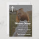 Life celebration invitation featuring a photo of your loved one with a combination of modern and retro fonts and a white cross. Your photo has a darker overlay to make the text pop. This white cross and font design, accompanied by a cherished photo of your loved one, is a beautiful and respectful way to invite friends and family to their funeral. This neutral Christian funeral invitation suits a funeral or memorial service for any gender.