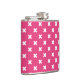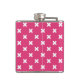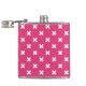 White cross stitches on fuchsia flask