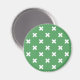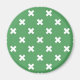 White cross stitches on green magnet
