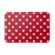 This rug is just as pictured! Vibrant Red and very soft material, nice to step in out of the tub! Matches my set of accessories and shower curtain! A must have to add some whimsy to your bathroom! Very nice, vibrant and clear print! Beautiful!