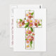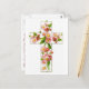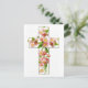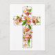 Lovely vintage watercolor watercolour painting of a white christian cross with pink flowers and green leaves. a clear cross that has within it beautiful peachy pink floral arrangement that covers the inside of the cross. a cross filled with flowers. pink flowers fill the cross.