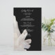 Customize the elegant White Crystals on Black Wedding Menu with the details of the meal that you will serve at your zen bridal shower luncheon, post wedding brunch or marriage reception dinner by adding the salad or first course, entree or second course and dessert or third course. Personalize it with the names of the bride and groom, event venue and date. This classy custom ethereal chakra theme wedding menu features a close up photograph of a white rock quartz cluster mineral druzy geode specimen with black background. Clear quartz is also known as the "master healer" and "stone of power" and is said to increase any energy or intention and makes a unique enhancement or addition to your wedding decor or theme.