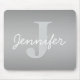 White Cursive & Grey Monogram | Editable Colors Mouse Pad
