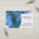 This clean, modern design features a bold white curve overlaying a background image. You may choose to use this image, which is a photo of a dappled, blue green shot taken of trees in spring - intentionally blurred - with light filtering through. You may, instead, customize the design and add your photo of choice. All details including your name, position, contact information are set in black over the white space. The photo is fully repeated on the back. The template was created with versatility in mind; change fonts, colors, position as you like.
