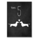 White Dachshund bride and groom silhouettes with heart. A chalkboard style wedding reception table card for Wiener Dog lovers. Each card must be numbered and added to cart separately. Visit Jenn's Doodle World for even more dog breed table cards and Doxie themed wedding planning products.