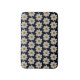 Step out of the shower onto this cushy bath mat that features the photo image of a white Dahlia flower with yellow center on a black background and printed in a repeating pattern. A lovely, floral design! Select your bath mat size.