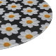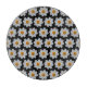 Chop and dice your food safely on this round, decorative, glass cutting board that features the photo image of a white Dahlia flower with yellow center and printed in a repeating pattern. A lovely, floral design!