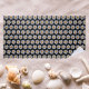 Have fun in the sun and beach with this large beach towel that features the image of a white Dahlia flower on a black background and printed in a repeating pattern. A fun, floral design!