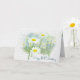 Close up of white daisies in country meadow with watercolor frame for 104th birthday.