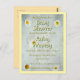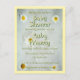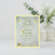 Several white daisies on a soft cotton white background. The text is white with golden yellow outline and a lighter green shadow as a fully customizable invitation to a baby shower for a mother to be.