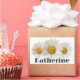 Three white daisies with a template for custom name in very dark gray on white background.