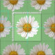 A pattern of white daisies on sage green background.