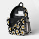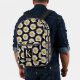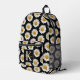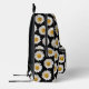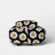 A pattern of pretty white daisies on black background with a monogram and a custom name in decorative script.
