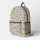 A pattern of pretty white and yellow daisies on light gray background with a monogram and a custom name in decorative script.
