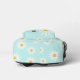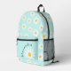 This cute and colorful backpack is sure to bring a smile with an all over pattern of white daisies, which are a very happy flower. Personalize it with a name in script typography in a dark gray color to match the zippers. Front pocket features the name and one large daisy. Perfect for school, the gym, travel and every day errands. Great girls back to school book bag.