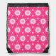 White daisy and stars over pink background pattern drawstring bag