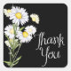 Say thank you with Flowers! These charming Thank You stickers feature a bouquet of white daises highlighted against an onyx black background.