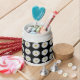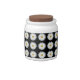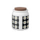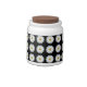 This little, white porcelain candy jar with cork lid is the perfect holder for candy, tea bags and more. Jar features the photo image of pretty, white Daisy flower on a black background and printed in a repeating pattern. A fun, floral design!