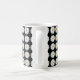Enjoy your favorite hot or cold beverage in this coffee mug that features the photo image of a white Daisy flower on a black background and printed in a repeating pattern around the mug. Select your mug style and color as desired.