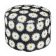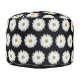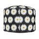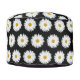 Accent your living space with a decorative pouf that features the photo image of a pretty, white Daisy flower on a black background and printed in a repeating pattern. A fun, floral design! Select your fabric style.