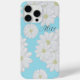White and yellow daisy flowers on a summer sky blue phone case with space for your name