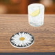 Protect your table top from water marks and stains with this extra-large, round, sandstone beverage coaster that features the photo image of a pretty, white Daisy flower on a black background. A lovely, floral design!