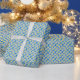 White Daisy Pattern on Blue Wrapping Paper