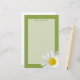 Pen a note to your friends and family with this personalized stationary. This design features a white daisy on a light green background with a darker green border and coordinates with all of the other fine products in our
