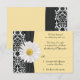 The text on this white daisy black and white damask shasta daisy and ribbon wedding reply or RSVP card is fully customizable. To change it use the personalize option. For more extensive text changes, such as changes to the font, font color, or text layout, use the customize option. Although this card is currently customized as a wedding reply card, it could also be used be used as a general wedding insert card. Really it's up to you. All you need to do is change the text. The colors on this reply card are pale cream or yellow, black, and white. NOTE: This invitation is a flat printed design without any 3D or raised embellishments.