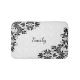 Elegant white floral damask pattern and black floral swirls. Custom name