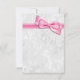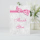 Elegant Thank You flat cards for girl's Baby Showers etc printed on invitation paper. Beautiful white damask pattern background with ornate swirls and flourishes a pretty, stylish, cute, girly pink bow and ribbon image. These glamorous, chic, classy thank yous are beautifully sophisticated and are decorated / printed on both sides. I have matching invitations and other matching products in my store. PLEASE NOTE: All invites on Zazzle have flat printed images. Bows and ribbons images purchased from digital-designs-by-elena. If you need any assistance customizing your product please contact me through my store and I will be happy to help.