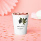 Rustic and gothic halloween theme bridal shower paper cup featuring illustration of black rose on a white background.