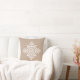 White Decorative Snowflake Silhouette On Beige Throw Pillow