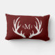 White Deer Antlers Monogram Rustic Red Burlap Lumbar Pillow