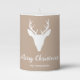 White Deer Head Silhouette On Beige & Custom Text Pillar Candle
