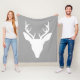 White Deer Head Silhouette On Gray Fleece Blanket