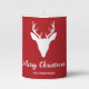 Destei's original white silhouette design of a deer head with large antlers on a red background color. There are also two personalizable text areas. A festive accent for the Holiday season!