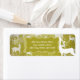 Holiday return address labels with an olive green background with lots of white deer, a snowflake, and olive green frame where you can add your name and address before ordering.