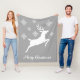 White Deer Shape On Gray With Snowflakes & Text Fleece Blanket