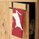 White Deer Shapes On Red With Snowflakes & Text Kitchen Towel
