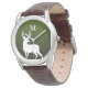 White standing buck deer silhouette over a forest green background and your choice of monogram letter in white.