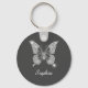 White Diamond Butterfly, DIY Name, Dark Gray Keychain