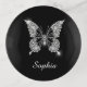 A classy white diamond butterfly design to personalize name in white script text on black background. Click “Customize” to change colors and type styles.