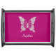 White Diamond Butterfly, Script Name, Deep Fuchsia Serving Tray