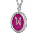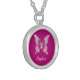 White Diamond Butterfly, Script Name, Deep Fuchsia Silver Plated Necklace