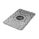 Simple brown wood boards pattern texture print with black background and a circle for customizable monogram.