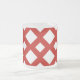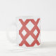 A bold, geometric pattern of large and small white diamonds on a red background. The red forms a lattice which separates the diamond shapes.