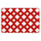 A bold, geometric pattern of large and small white diamonds on a red background. The red forms a lattice which separates the diamond shapes.