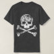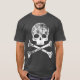 This image features the iconic skull and crossbones symbol rendered in a light color, appearing white or off-white, with a heavily distressed or grunge texture applied. The classic arrangement shows a frontal view of a skull positioned centrally above two crossed bones. The light-colored shape is not uniformly filled but appears faded, scratched, or textured, giving it a worn, vintage, or gritty appearance.